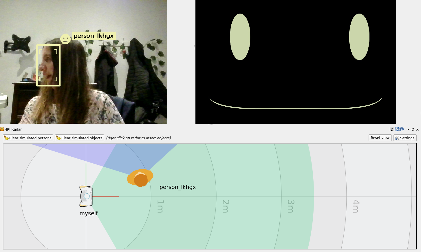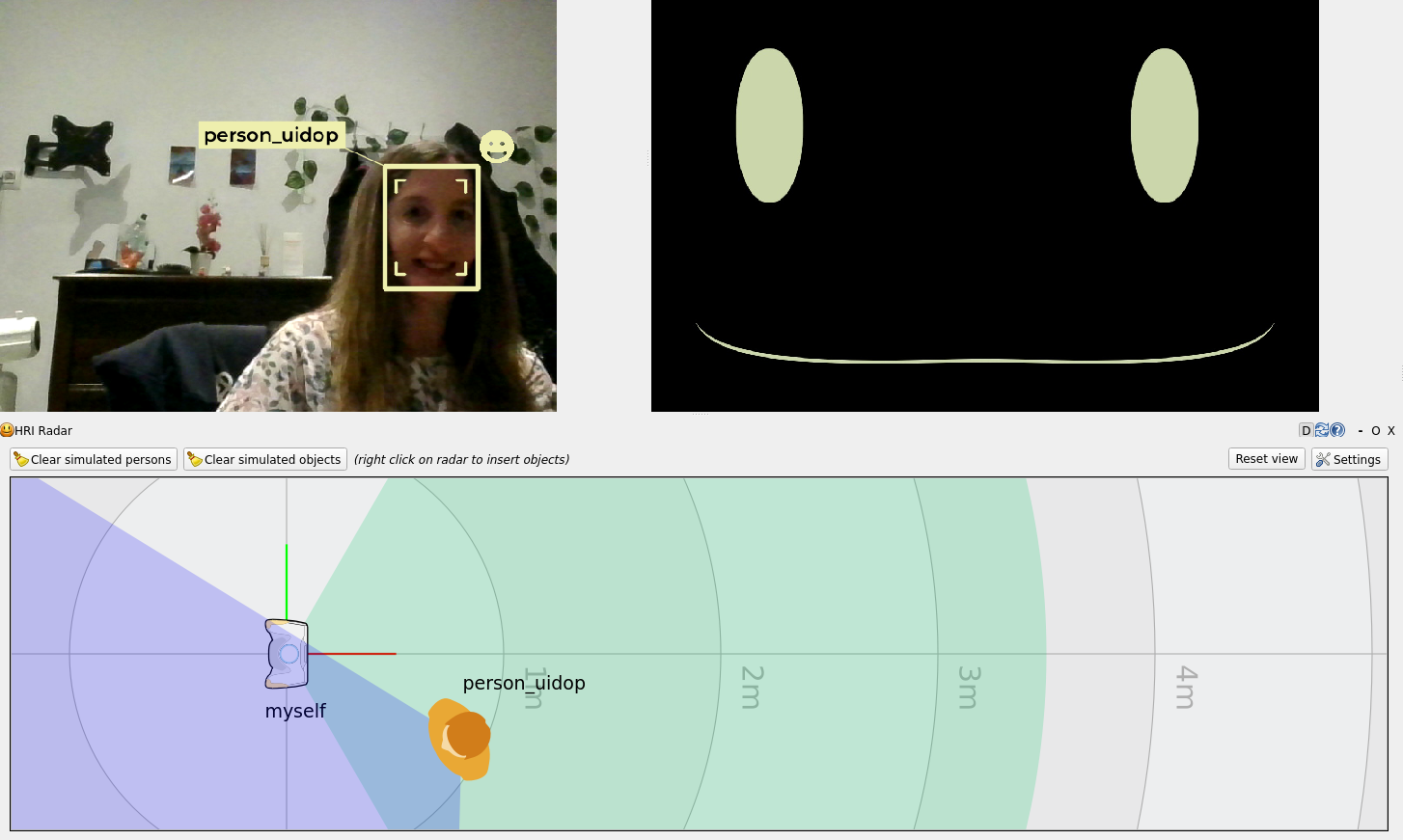 Move side to side and, as you see changes in the position of humans detected in the radar, see how the robot adjusts its gaze to look at you (see example below)