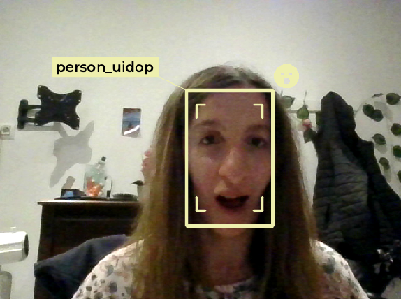 Outputs the image detected by the USB camera, highlighting faces and bodies with bounding boxes. Each person is assigned a unique ID, and detected emotions are represented as emojis near their bounding boxes.