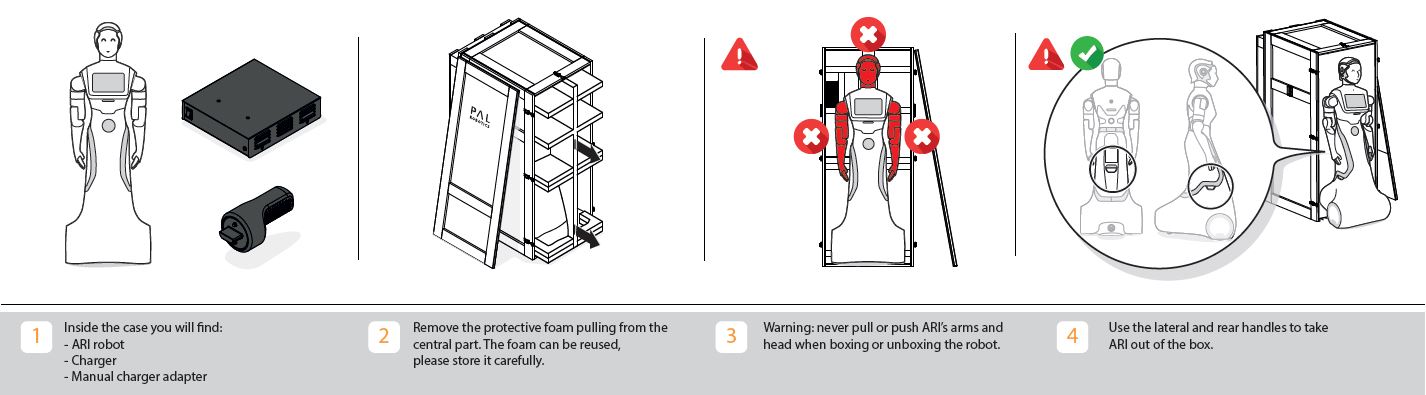 Warning: never pull or push ARI’s arms and head when boxing or unboxing the robot.