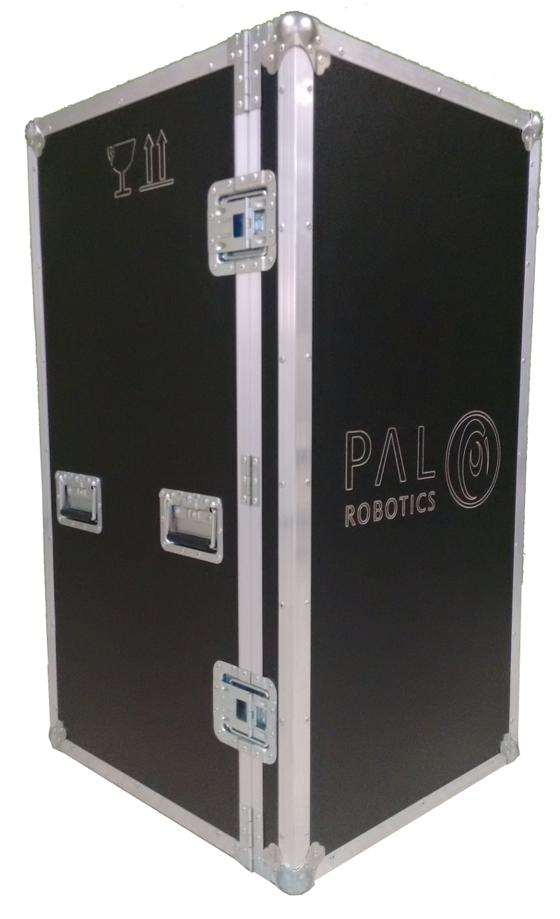 The flightcase MUST always be transported vertically to ensure the robot’s safety. In order to move the flightcase, pull the handle on the back, as shown in figure below. To place the flightcase in a given location, use one of your feet to help you carefully set the flightcase in an upright position.