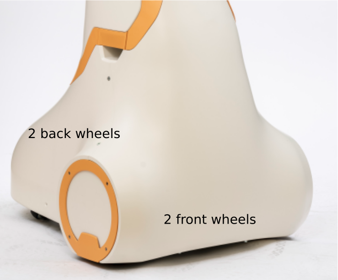The base joints of ARI are the front and back wheels of the robot. Take care when wheeling ARI, especially with the smaller back wheels.