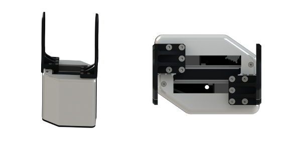 The PAL Parallel Gripper is shown in the figure below. The gripper contains two motors, each controlling one of the fingers. Each finger has a linear range of 4 cm.