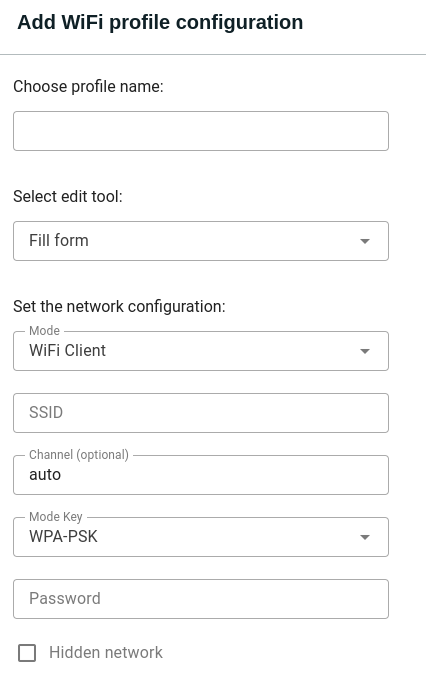 Fill in SSID, password, and optional advanced settings