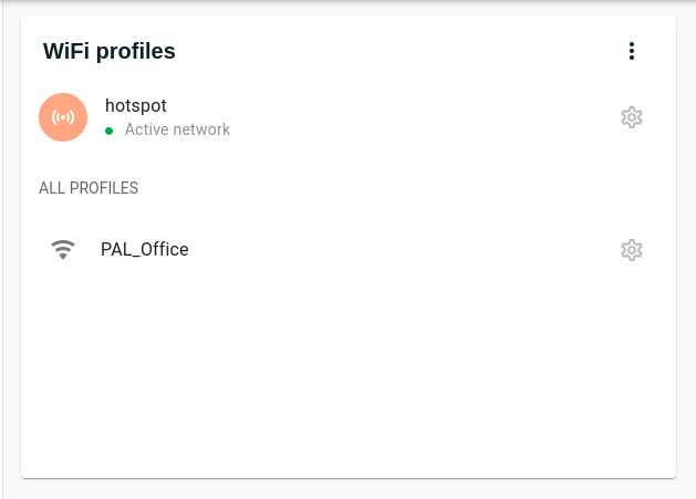 - Active profile: Displays the currently enabled profile for the selected network group (WiFi or Wired).