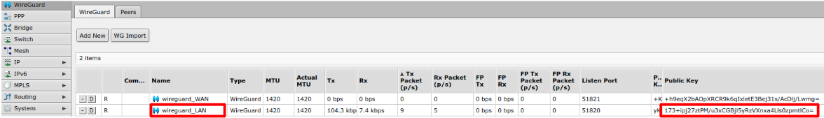 Take note of the WG LAN public key (NOT the WG WAN) of the robot as shown in the following screenshot labelled as Public Key: