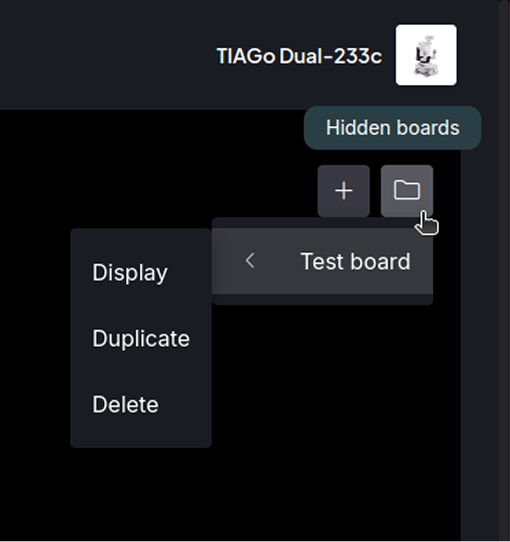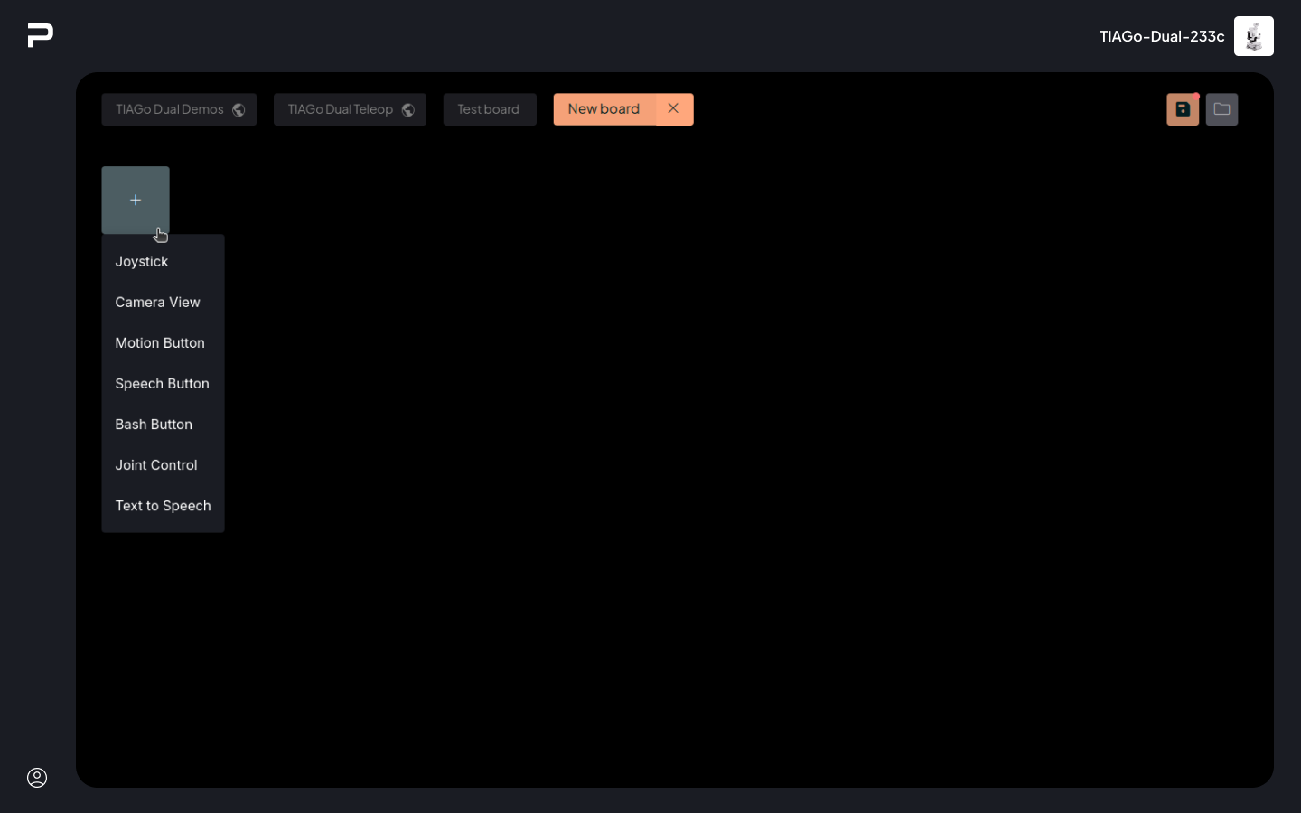 The Boards app is the homepage for WebGUI. This app allows the user to create and configure their own boards to monitor and teleoperate the robot. Those boards are highly customizable, which allows for a wide range of options to adapt to the user preferences at any given time.