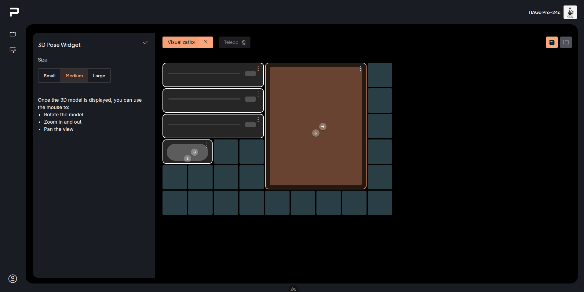The Web User Interface (WebGUI) is a robot control and configuration tool, consisting of a set of plugins and applications developed and maintained by PAL Robotics. It is designed to simplify robot management, interaction, and the overall user experience.
