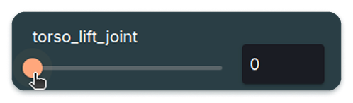 The Joint Control Widget allows control of a specific joint of the robot, either through a slider, or with a numeric input field. When the joint is being controlled a second tick will appear on the track, to show the current position of the joint.