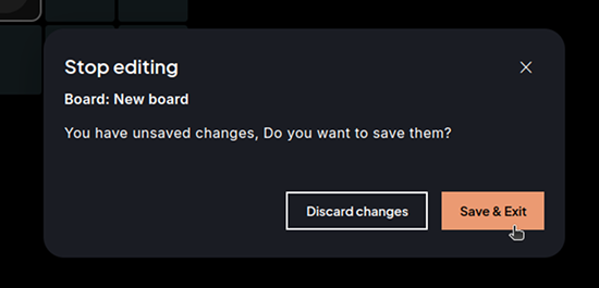 Edit board: Switches the board to editing mode, similar to the creation mode described before.