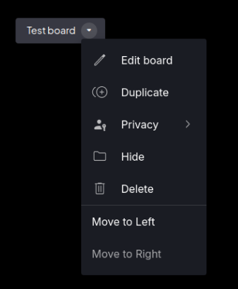 Move to Left / Right: Moves the board button in the specified direction to reorder the board tabs list.