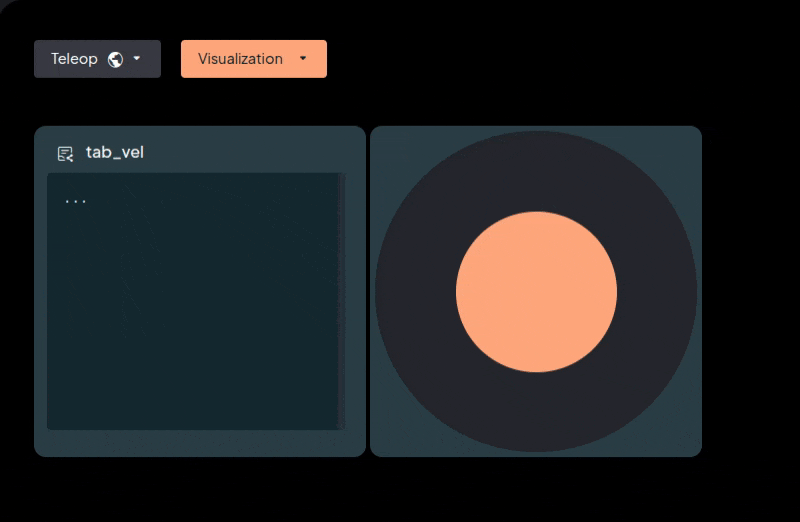 The Joystick widget allows controlling the position of the robot. Moving the joystick towards the front or towards the back will make the robot start moving forwards or backwards respectively. Moving the joystick towards the sides will make the robot rotate in the same direction.