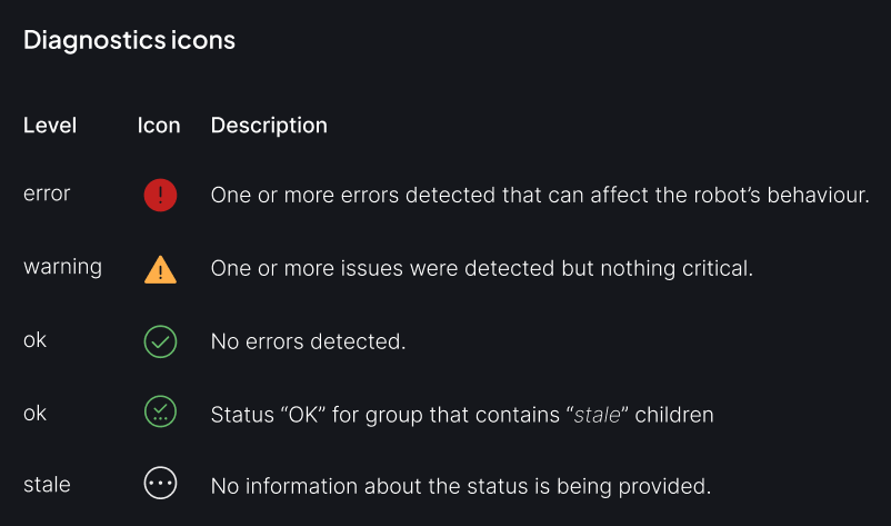 The robot panel will show different icons depending on the current active configuration. Hovering over the icon will show the name of the profile associated with the active network type.