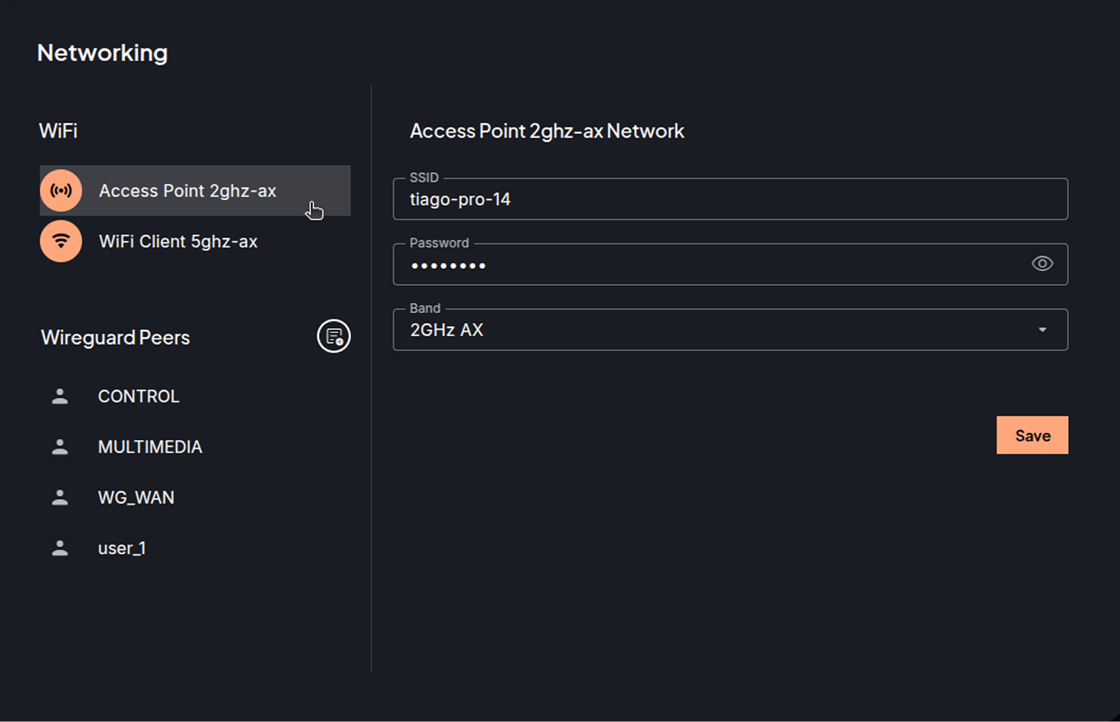 Hidden: Checkbox to mark if the network is hidden or not. A hidden network is a wireless network that is not broadcasting its SSID. It is invisible to other devices searching for a new network to join. Example: when setting a robot as an access point and configuring it as a hidden network, the SSID set will not show in the list of your device’s available WiFis list.