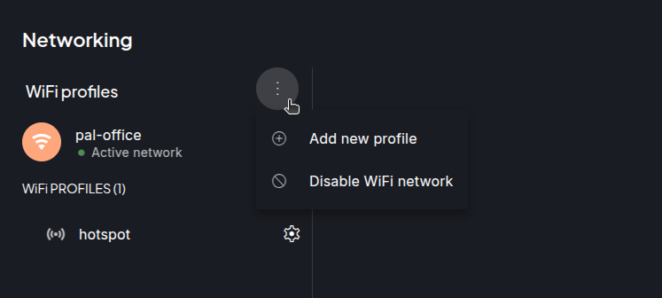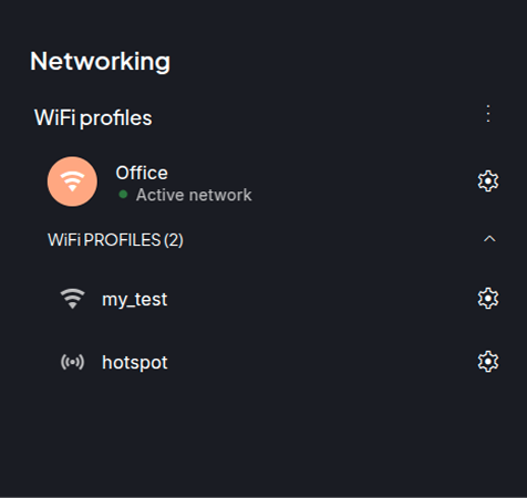 A profile is the network configuration that can be created and managed by the user. You can enable a profile to set it as the active configuration for the network settings. There can be WiFi profiles or Wired profiles.