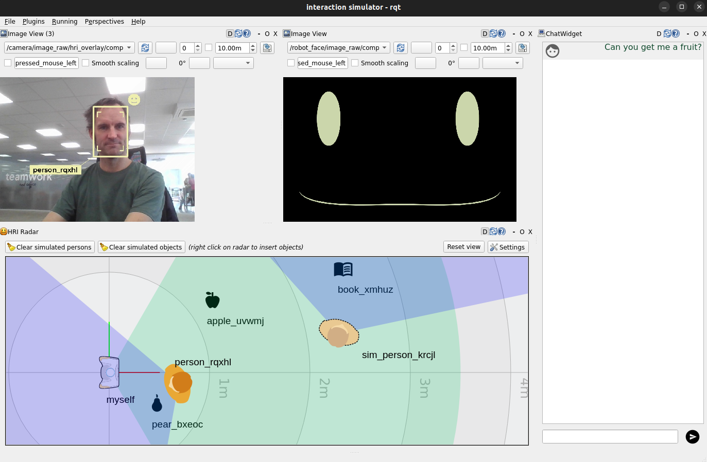 ros2 topic listshould list all the robot’s topics (note that you might have to wait up to a minute for the initial node discovery to complete)ros2 topic echo /humans/faces/trackedshould output the list of faces currently detected by the robot.