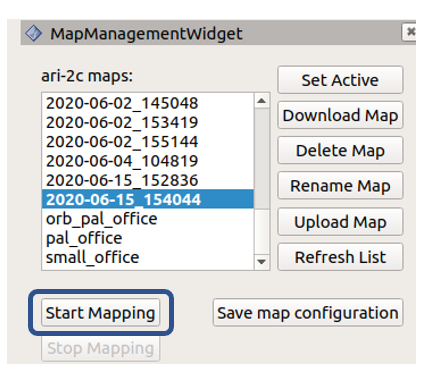 • Start and stop mapping, by pressing the corresponding buttons in the MapManagementWidget, as well as perform other map operations.