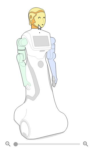 When the Position mode is active, you can interact with the ARI image and choose the part of the robot to control. Use a zoom slider under it to change the image size.