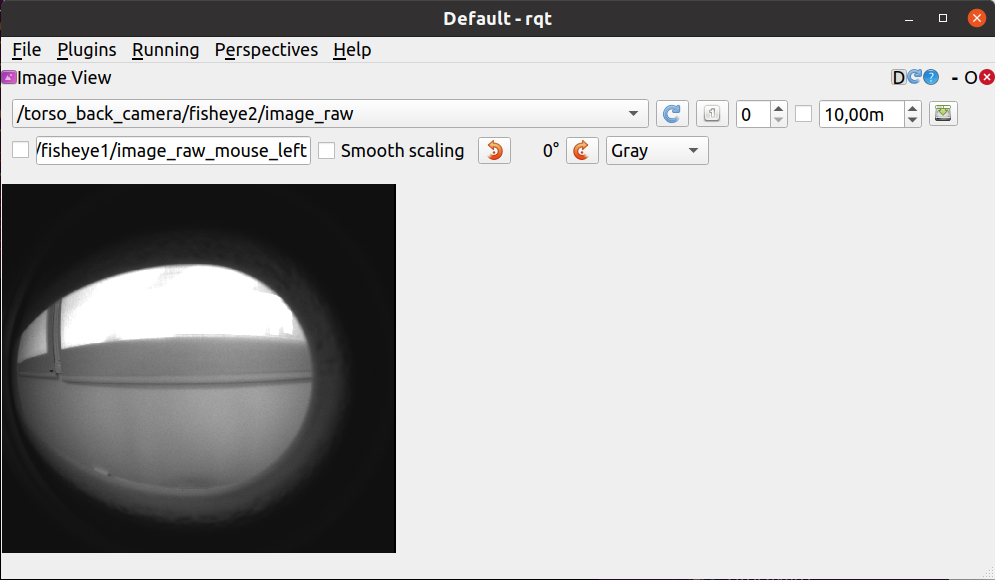 Select the topic of the camera you want to visualize. In the image below we are visualizing the /torso_back_camera/fisheye1/image_raw/*.